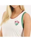 O design “Nexus” destaca as cores tradicionais do Fluminense — verde, branco e grená — em uma estampa moderna que reflete a conexão entre o clube e sua torcida. O escudo do Fluminense (FFC) é estampado no peito, geralmente em silk de alta qualidade, simbolizando o orgulho tricolor. A modelagem feminina apresenta alças largas e um caimento soltinho, oferecendo liberdade de movimento e versatilidade para combinar com shorts, saias ou leggings, tornando-a uma escolha prática e elegante.